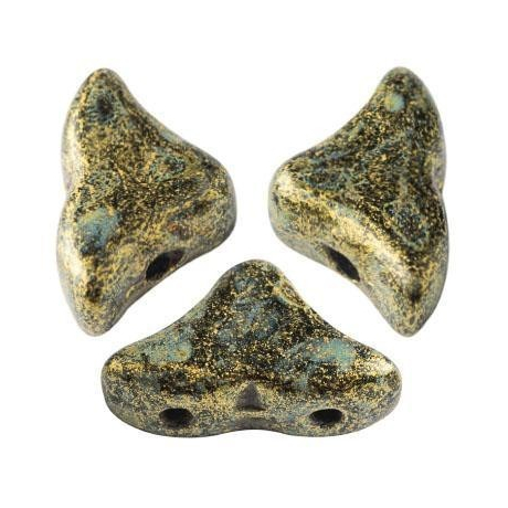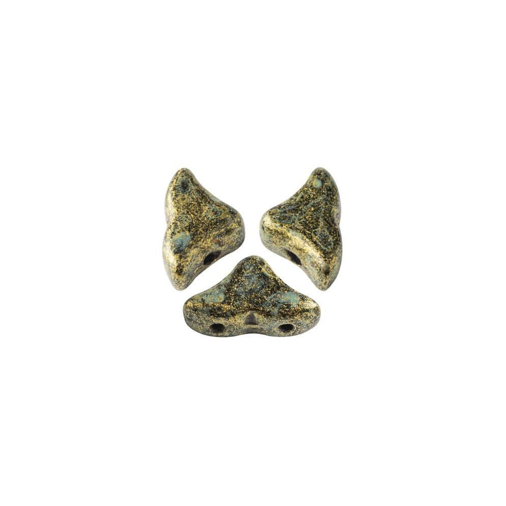 Starozlatá barva s matným kovovým efektem vnáší do moderního šperkařství nádech antické vznešenosti a nadčasové elegance. Hélios® par Puca® č. 57 v odstínu Metallic Mat Old Gold Spotted představují unikátní trojúhelníkový tvar se dvěma průtahy, který je ideální pro tvorbu precizních prostorových vzorů. Tyto české skleněné korálky vynikají specifickou strukturou povrchu s jemným skvrnitým dekorem, který imituje autentickou patinu drahých kovů.