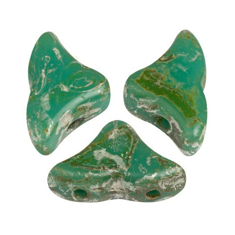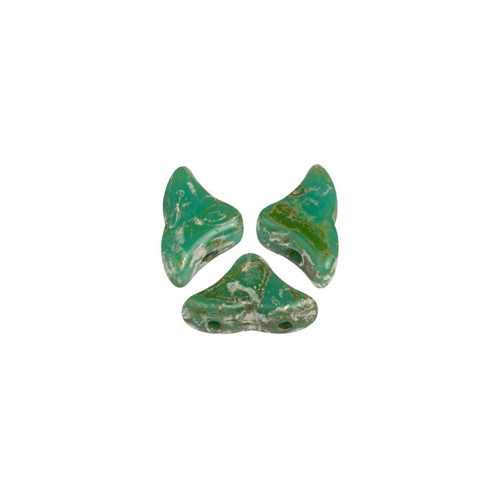 Rozměry 6 x 10 mm a precizně vylisovaný tvar Hélios® par Puca® představují špičku v oboru mačkaného českého skla. Tyto korálky s neprůhledným tyrkysovým základem a unikátním povrchem Picasso disponují dvěma paralelními průtahy o velikosti 0,8 mm, které zajišťují perfektní stabilitu při šití. Díky své geometrii umožňují plynulé napojení nitě a minimalizují riziko třepení při použití korálkovací jehly velikosti 10-12.