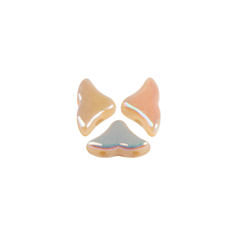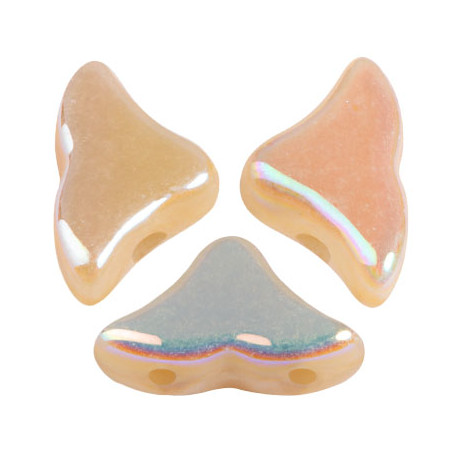 Krémová barva s jemným duhovým odleskem AB (kód 13020/28701) dodává šperkům nádech nadčasovosti a jemné sofistikovanosti. Tento specifický tvar o rozměrech 6 x 10 mm se dvěma průtahy umožňuje vytvářet složité geometrické vzory a plastické textury v rámci beadweavingu. Barva krásně ladí s hřejivými tóny, jako je světle hnědá či topaz, ale pro dosažení neutrálního luxusního vzhledu ji doplňte o zlaté akcenty.