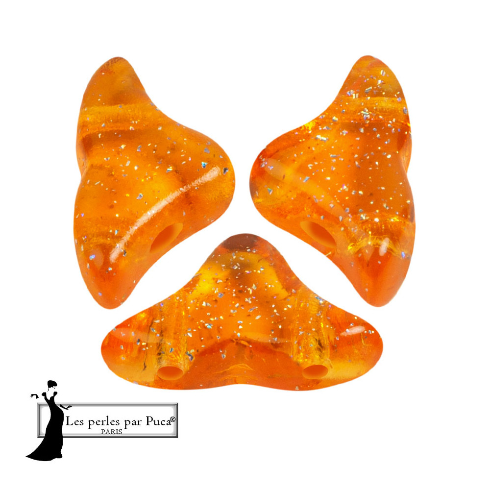 Hledáte způsob, jak do svých projektů vnést více dynamiky a světla, aniž byste museli složitě kombinovat desítky drobných dílků? Oranžová barva s efektem hvězdné konstelace vyřeší mdlý vzhled šperku a okamžitě přitáhne pozornost k vašemu výtvoru. Tyto skleněné korálky Hélios® par Puca® nabízí unikátní prohnutý trojúhelníkový tvar se dvěma průtahy, který umožňuje hladké propojování a vytváření složitých vzorů s minimálním úsilím.