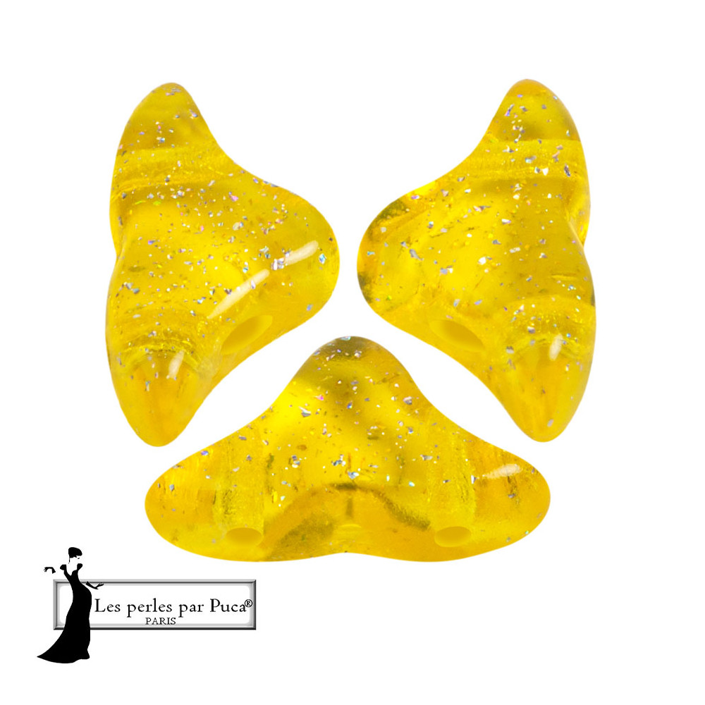 Žlutý sluncem zalitý náhrdelník vytvoříte snadno spojením těchto unikátních prvků s rokajlem Preciosa 11/0. Korálky Hélios® par Puca® v odstínu Transparent Constellation Yellow přináší do vaší tvorby dynamiku díky svému originálnímu tvaru se dvěma otvory. Tento skleněný korálek o velikosti 6 x 10 mm vyniká jemnými třpytkami uvnitř transparentního těla, což evokuje hvězdnou konstelaci a dodává hotovému šperku hloubku.