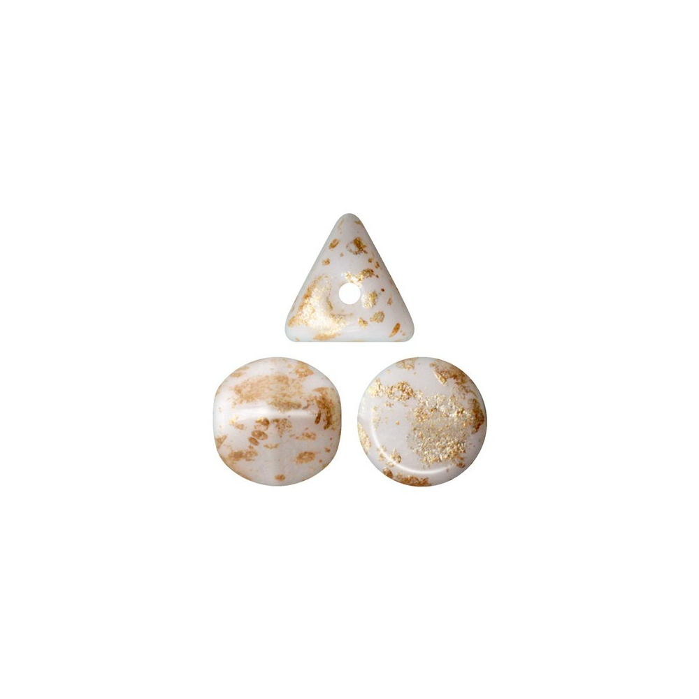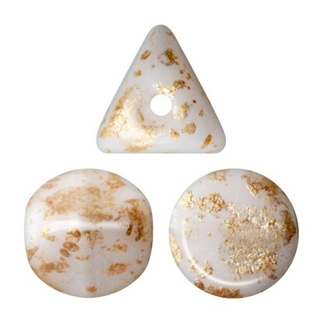 Bílá barva čistého sněhu protkaná náhodnými doteky zlaté barvy vytváří na povrchu korálků Ilos® par Puca® fascinující vizuální hru, která okamžitě upoutá pozornost v každém autorském šperku. Tyto unikátní skleněné korálky ve tvaru trojúhelníku vnášejí do tvorby moderní geometrický prvek, jenž se díky svému kónickému profilu krásně vrství a vytváří zajímavé prostorové efekty. Vzhled Opaque White Splash s kódem 03000/94401 v sobě spojuje čistotu neprůhledného bílého skla s luxusním nádechem drahého kovu.