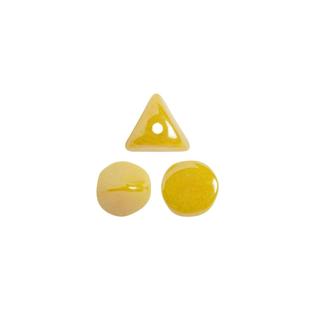 Zářivý odstín Jonquil Opal Luster přináší do světa bižuterní tvorby nevídanou svěžest a eleganci, která vychází z unikátního spojení francouzského šarmu a precizní české sklářské tradice. Tyto trojúhelníkové mačkané skleněné korálky Ilos® par Puca® o velikosti 5 x 5 mm jsou navrženy designérkou Annick Puca tak, aby vytvořily harmonický celek s dalšími tvary z kolekce, jako jsou například Arcos® par Puca® nebo Delos® par Puca®. Jejich opalizující povrch s jemným leskem dokonale vynikne v moderních geometrických vzorech, kde můžete plně využít jejich schopnost skládání do složitých mozaik a originálních struktur.