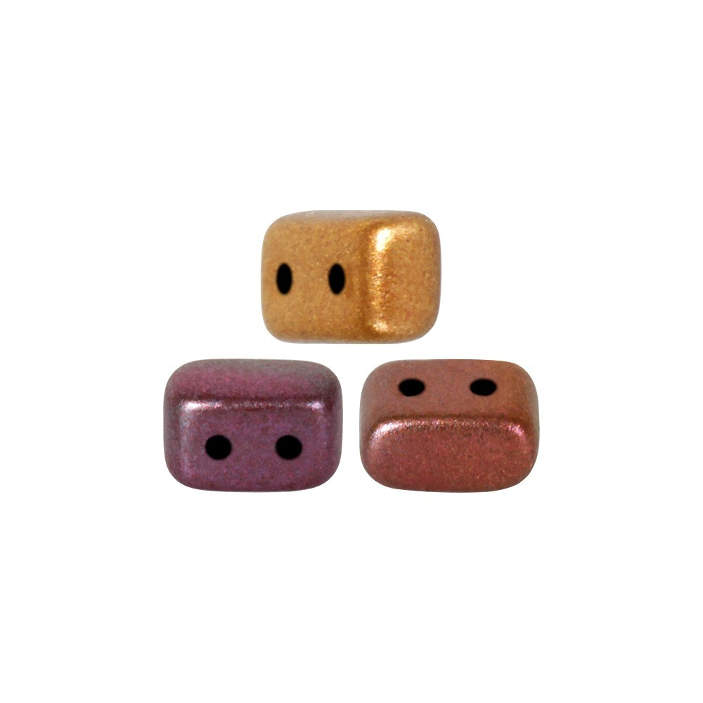 Ios® par Puca® č. 312 představují precizně zpracované dvoudírkové mačkané korálky z kvalitního českého skla o rozměru 2,5 x 5,5 mm. Tyto komponenty se vyznačují dokonale souměrným tvarem se dvěma průtahy o průměru 0,8 mm, které umožňují stabilní a přesné usazení v náročnějších vzorech. Díky své konstrukci jsou ideální pro techniku bead weaving, kde je vyžadována vysoká konzistence rozměrů pro zachování geometrické čistoty šperku. Povrchová úprava Yellow Gold Metallic Iris dodává korálkům luxusní kovový lesk s měňavými odlesky, které v balení po 25 ks otevírají prostor pro profesionální bižuterní tvorbu.
