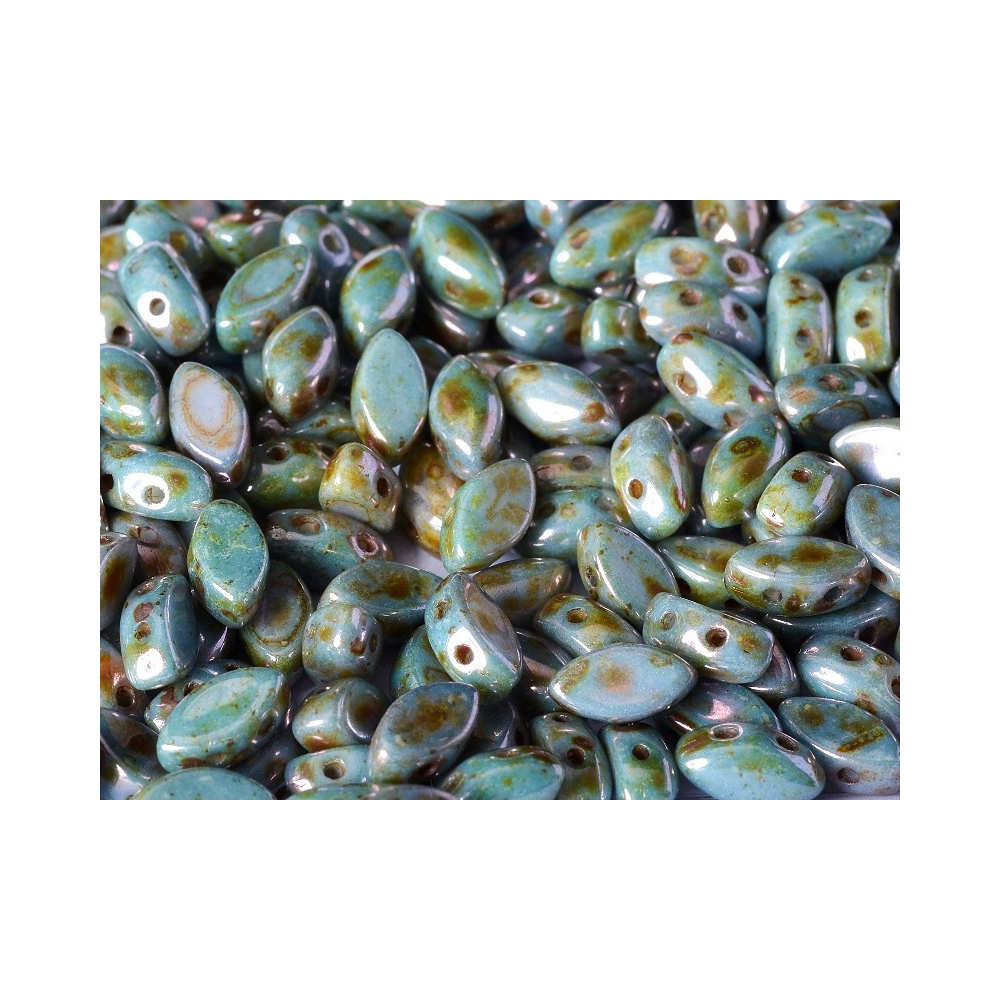 Iris Duo Velikost 4 x 7 mm Velikost průtahu: 0,8 mm Balení: 20 ks Barva: CHALK WHITE TEAL LUSTER...