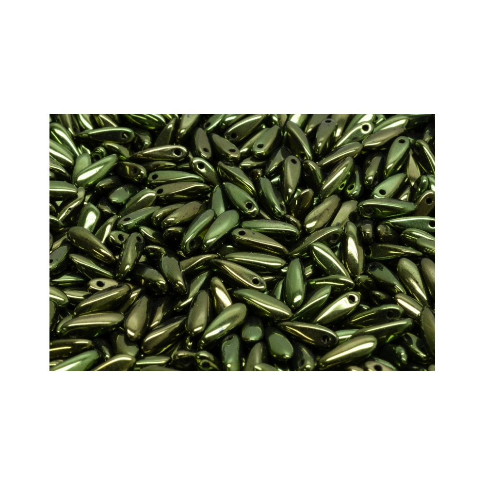 České skleněné korálky jazýčky 3 x 11 mm Velikost průtahu: 0,7 mm Balení: 50 ks Barva: zelená...