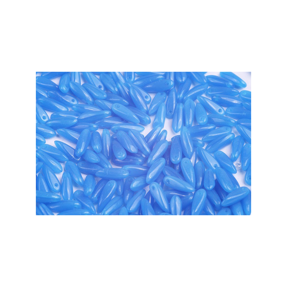 České skleněné korálky jazýčky 3 x 11 mm Velikost průtahu: 0,7 mm Balení: 50 ks Barva: modrá...