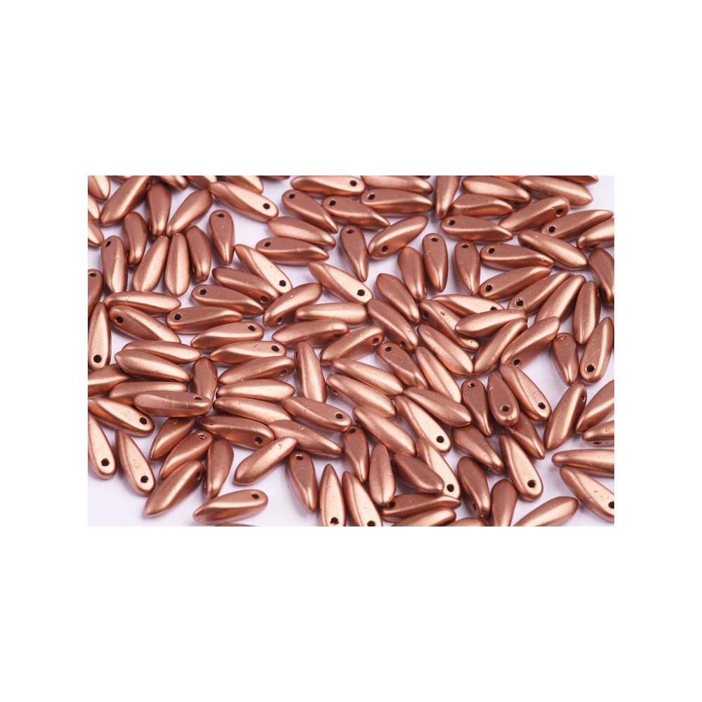 České skleněné korálky jazýčky 3 x 11 mm Velikost průtahu: 0,7 mm Balení: 40 ks Barva: měděná...