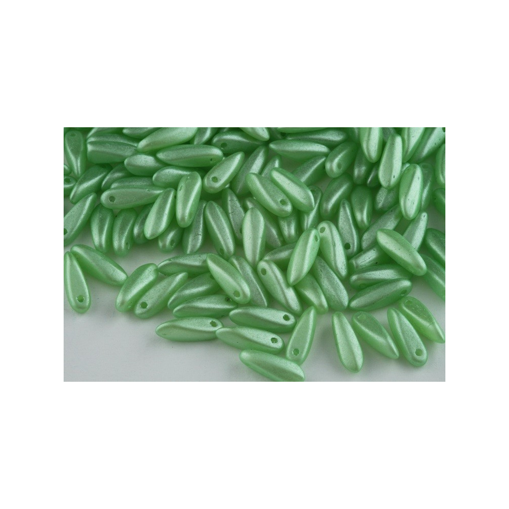 České skleněné korálky jazýčky 3 x 11 mm Velikost průtahu: 0,7 mm Balení: 50 ks Barva: zelená...