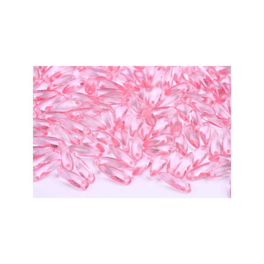 České skleněné korálky jazýčky 3 x 11 mm Velikost průtahu: 0,7 mm Balení: 50 ks Barva: růžová...