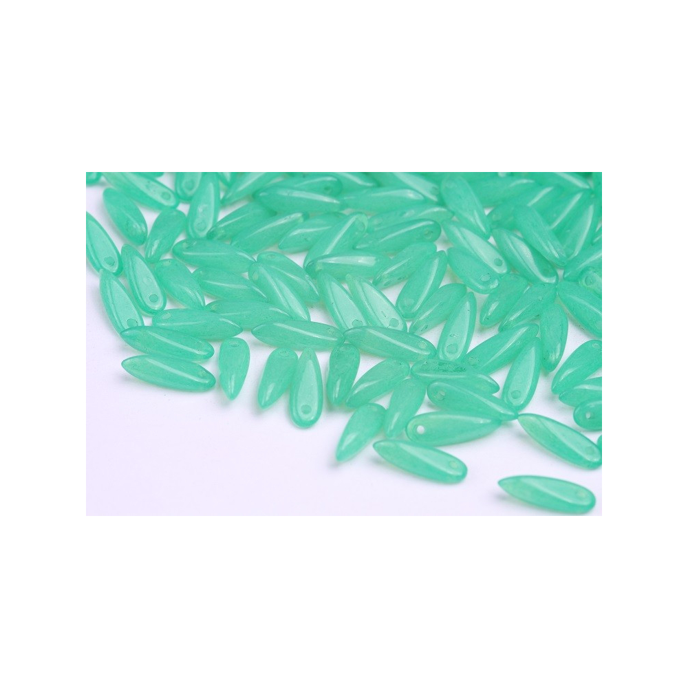 České skleněné korálky jazýčky 3 x 11 mm Velikost průtahu: 0,7 mm Balení: 40 ks Barva: zelená...