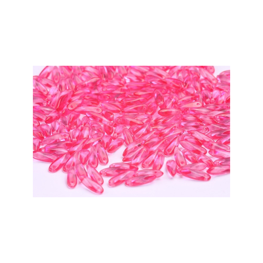 České skleněné korálky jazýčky 3 x 11 mm Velikost průtahu: 0,7 mm Balení: 50 ks Barva: růžová...