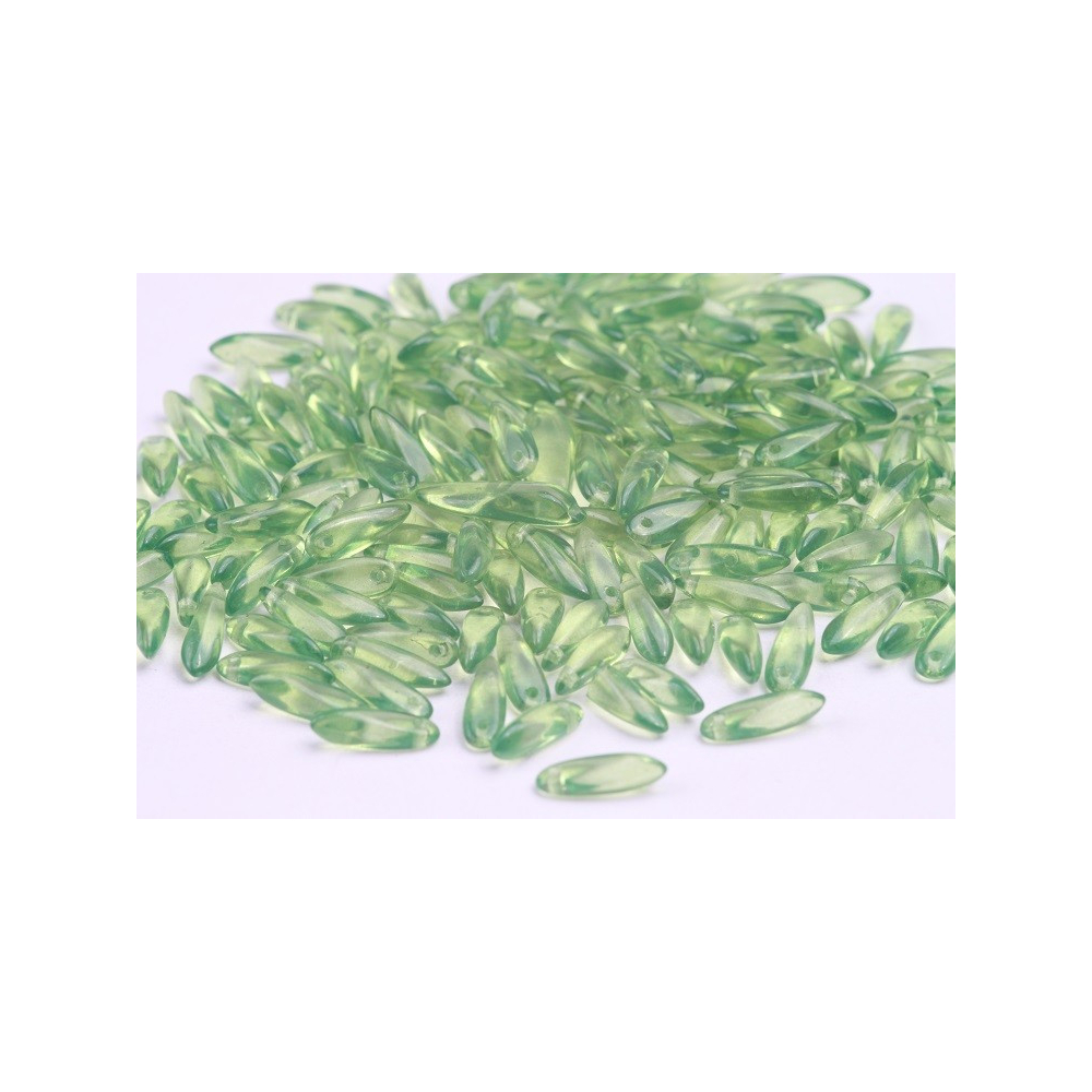 České skleněné korálky jazýčky 5 x 16 mm Průtah: 0,7 mm Balení: 20 ks Barva: zelená Materiál:...