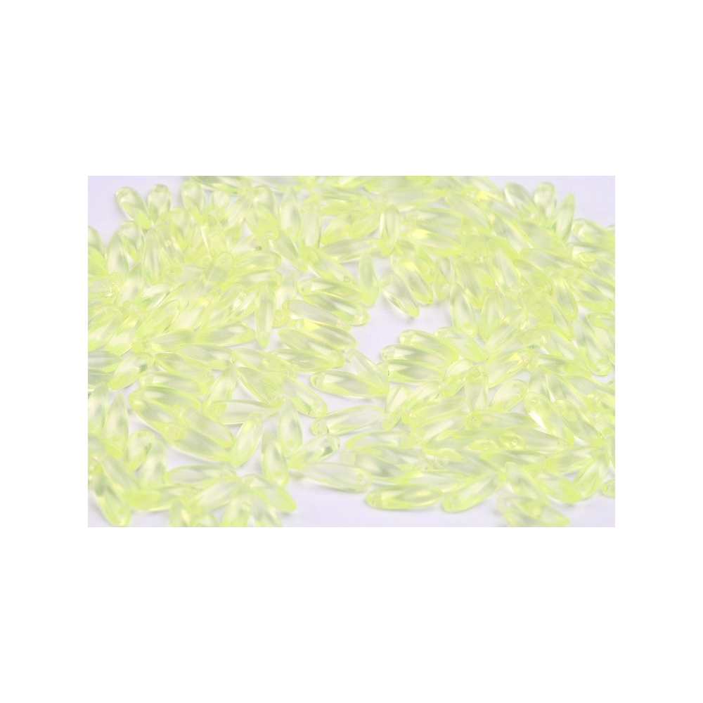 České skleněné korálky jazýčky 3 x 11 mm Velikost průtahu: 0,7 mm Balení: 50 ks Barva: žlutá...