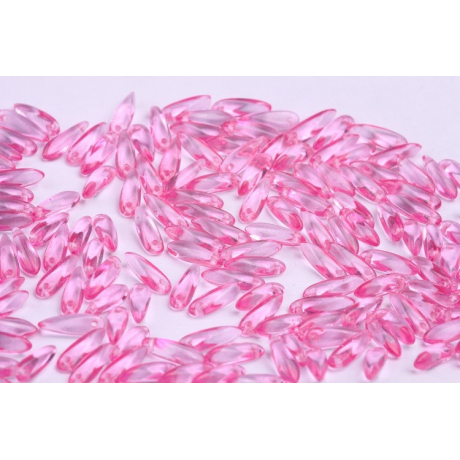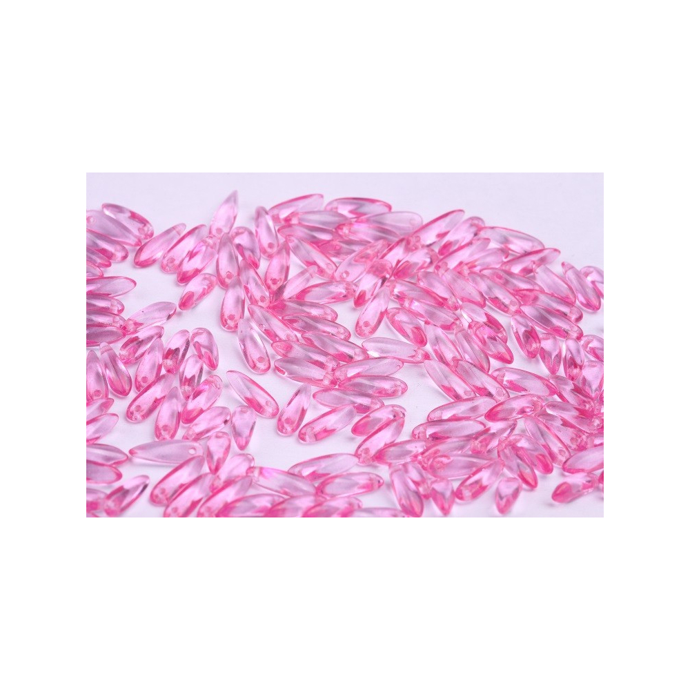České skleněné korálky jazýčky 3 x 11 mm Velikost průtahu: 0,7 mm Balení: 50 ks Barva: růžová...