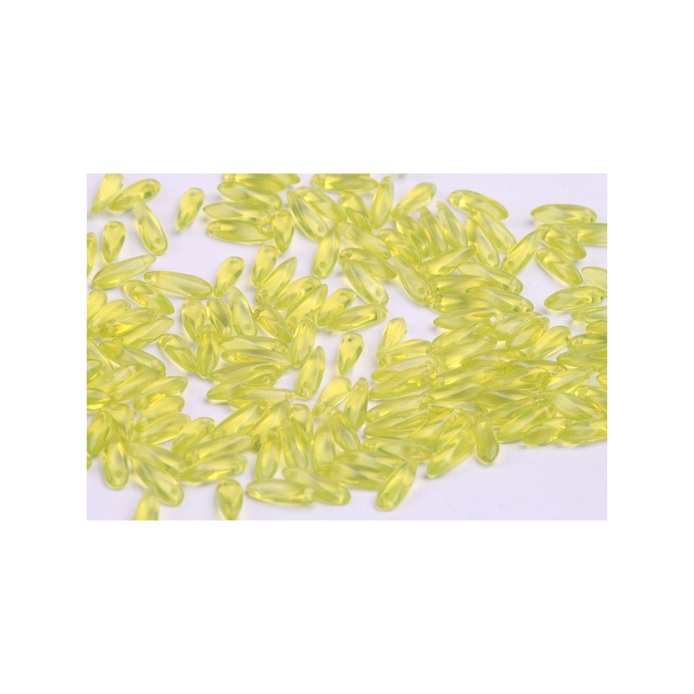 České skleněné korálky jazýčky 3 x 11 mm Velikost průtahu: 0,7 mm Balení: 50 ks Barva: žlutá...