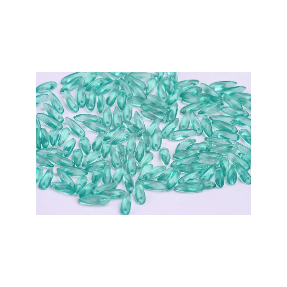České skleněné korálky jazýčky 5 x 16 mm Průtah: 0,7 mm Balení: 20 ks Barva: OPAL GREEN AQUA Kód...