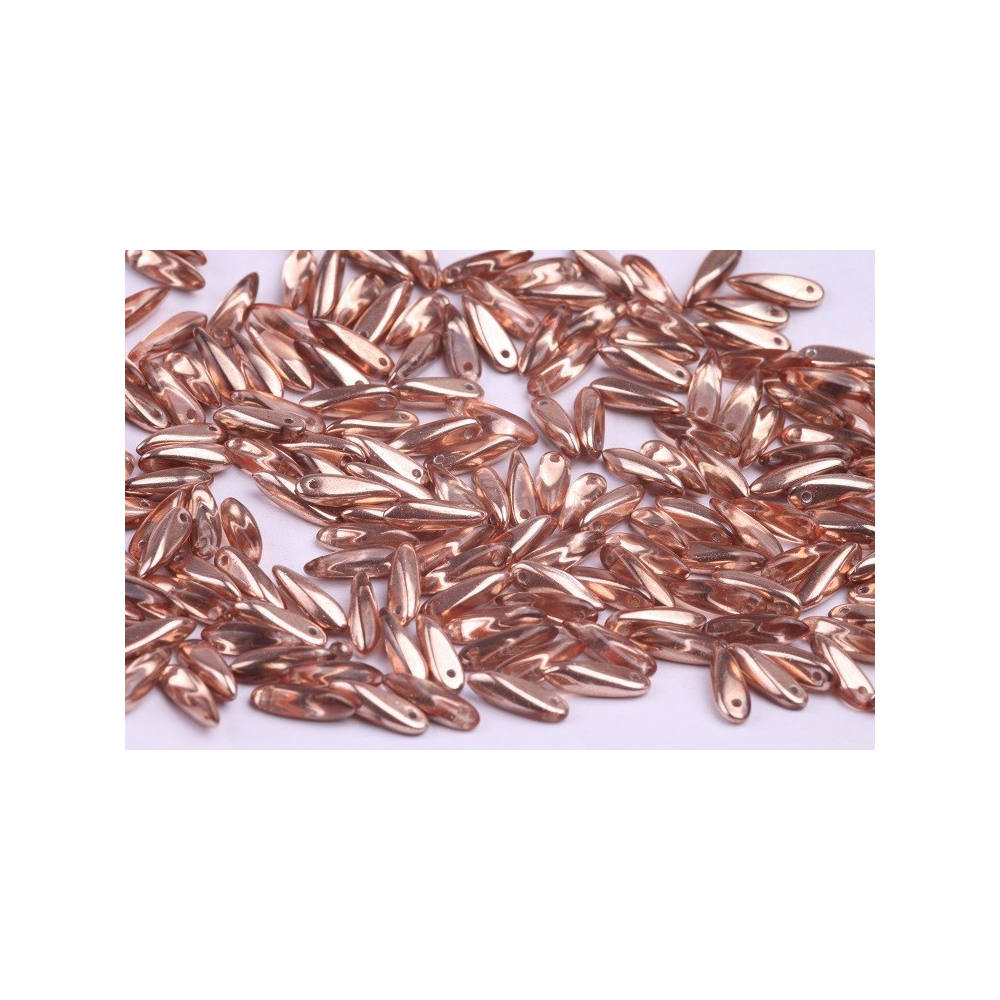 České skleněné korálky jazýčky 3 x 11 mm Velikost průtahu: 0,7 mm Balení: 50 ks Barva: růžová...