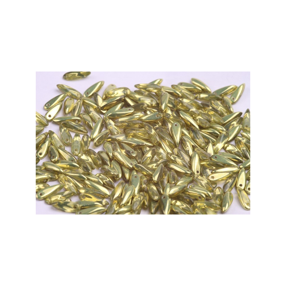 České skleněné jazýčky 3 x 11 mm Velikost průtahu: 0,7 mm Balení: 40 ks Barva: CRYSTAL CAPRI GOLD...