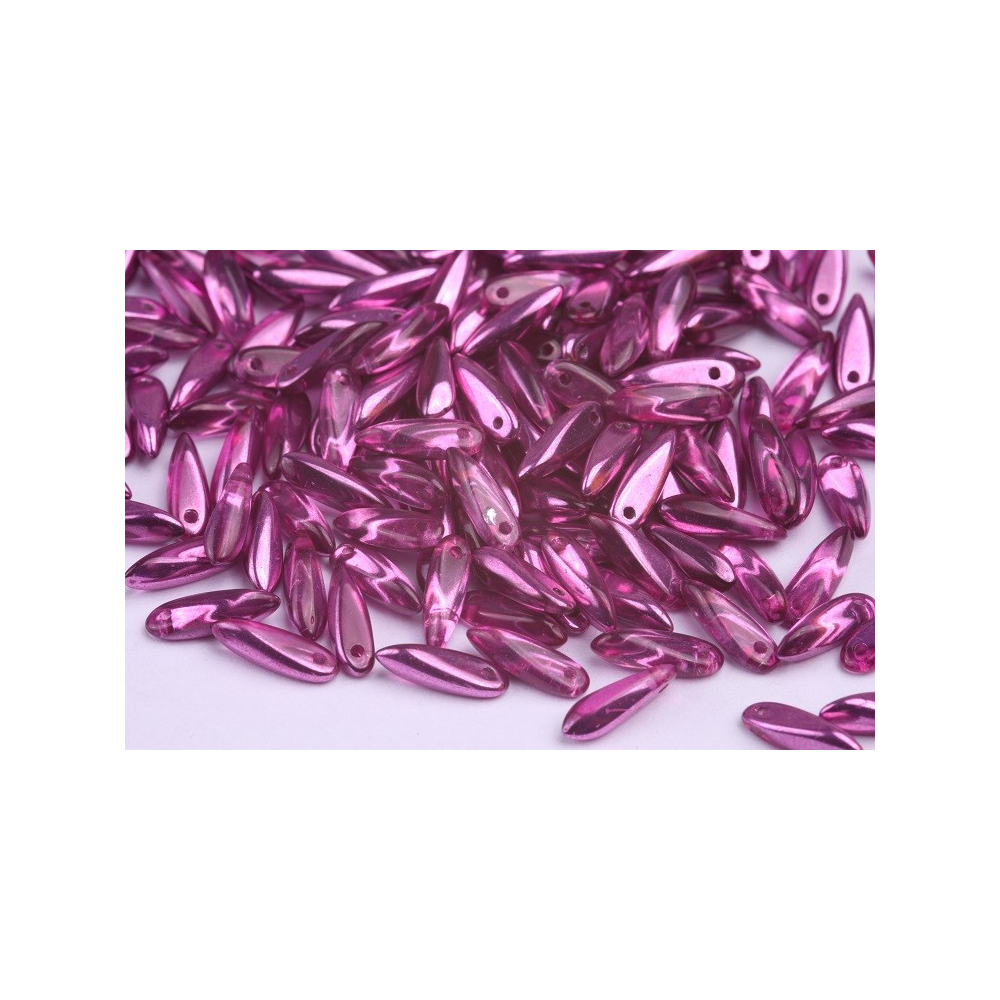 České skleněné korálky jazýčky 3 x 11 mm Velikost průtahu: 0,7 mm Balení: 50 ks Barva: růžová...