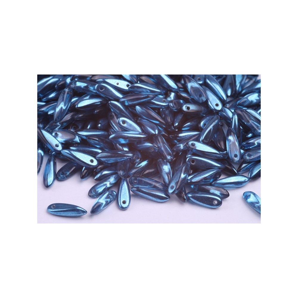 České skleněné korálky jazýčky 3 x 11 mm Velikost průtahu: 0,7 mm Balení: 35 ks Barva: AZZURRO...
