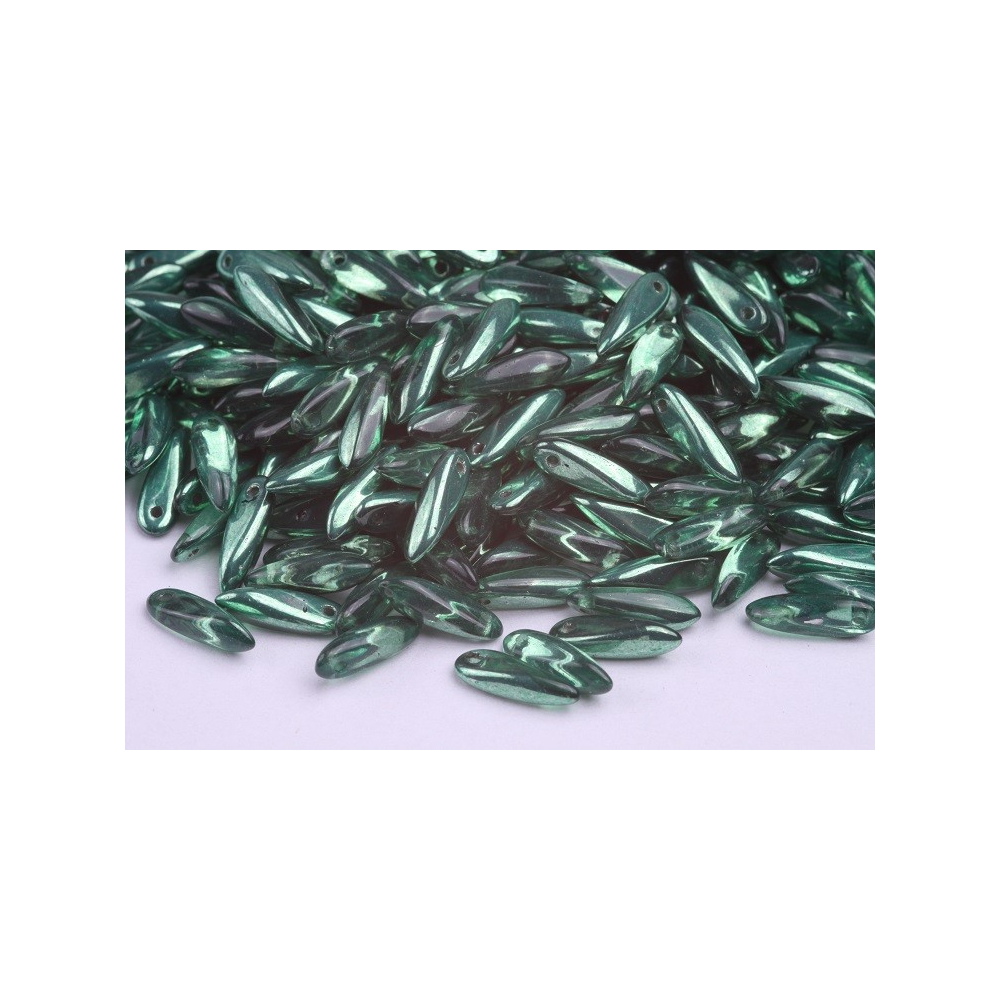 České skleněné korálky jazýčky 3 x 11 mm Velikost průtahu: 0,7 mm Balení: 50 ks Barva: zelená...