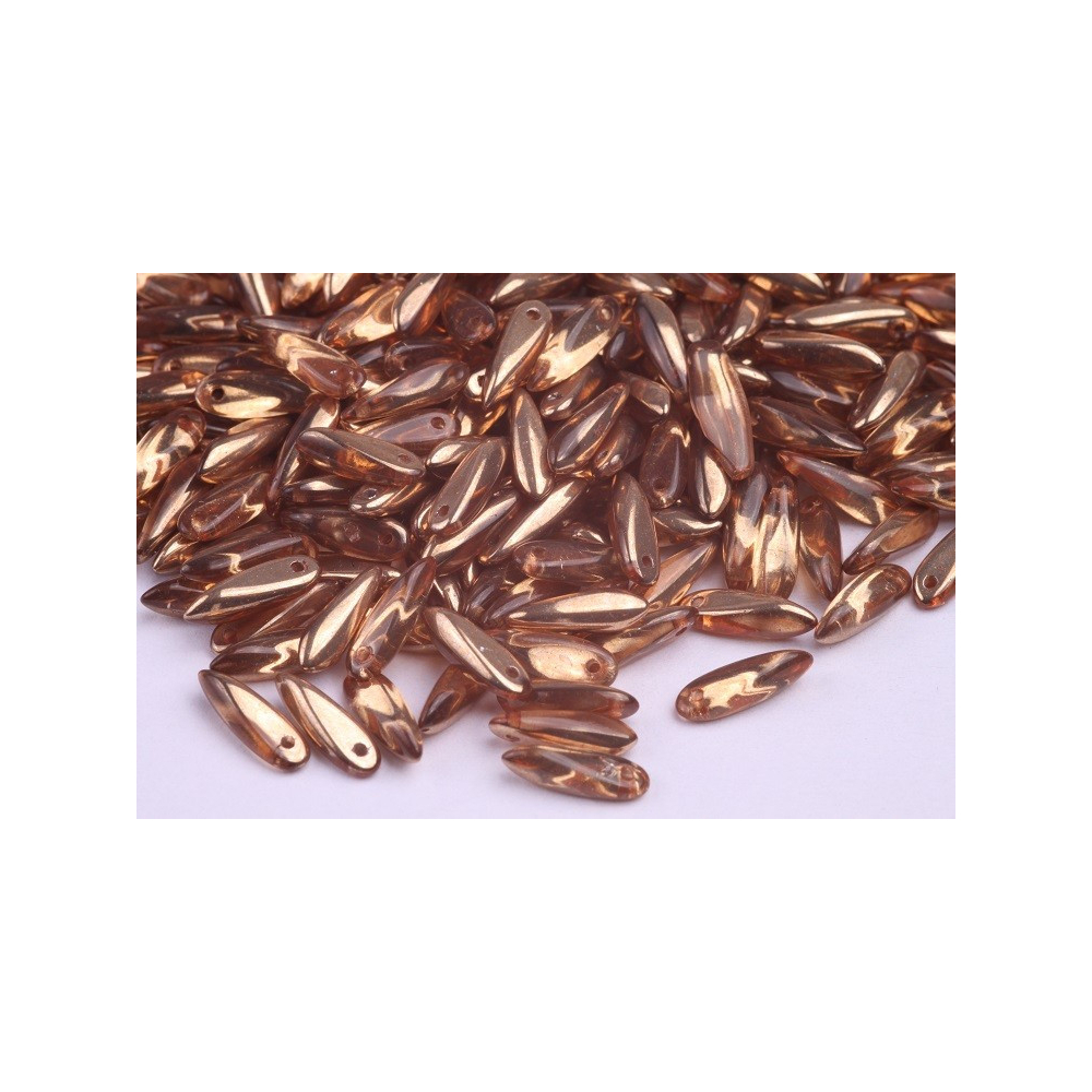 České skleněné jazýčky 3 x 11 mm Velikost průtahu: 0,7 mm Balení: 40 ks Barva: CRYSTAL CAPRI GOLD...