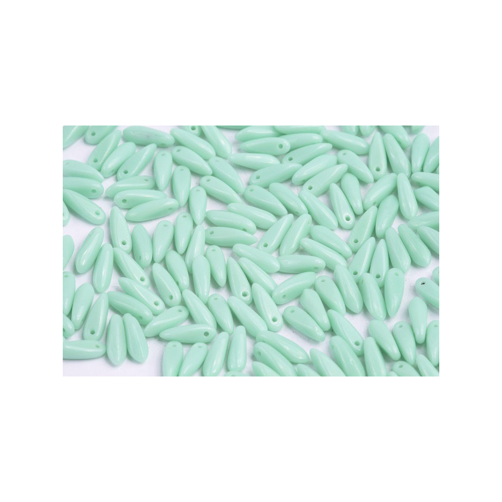 České skleněné korálky jazýčky 5 x 16 mm Průtah: 0,7 mm Balení: 14 ks Barva: zelená Materiál:...