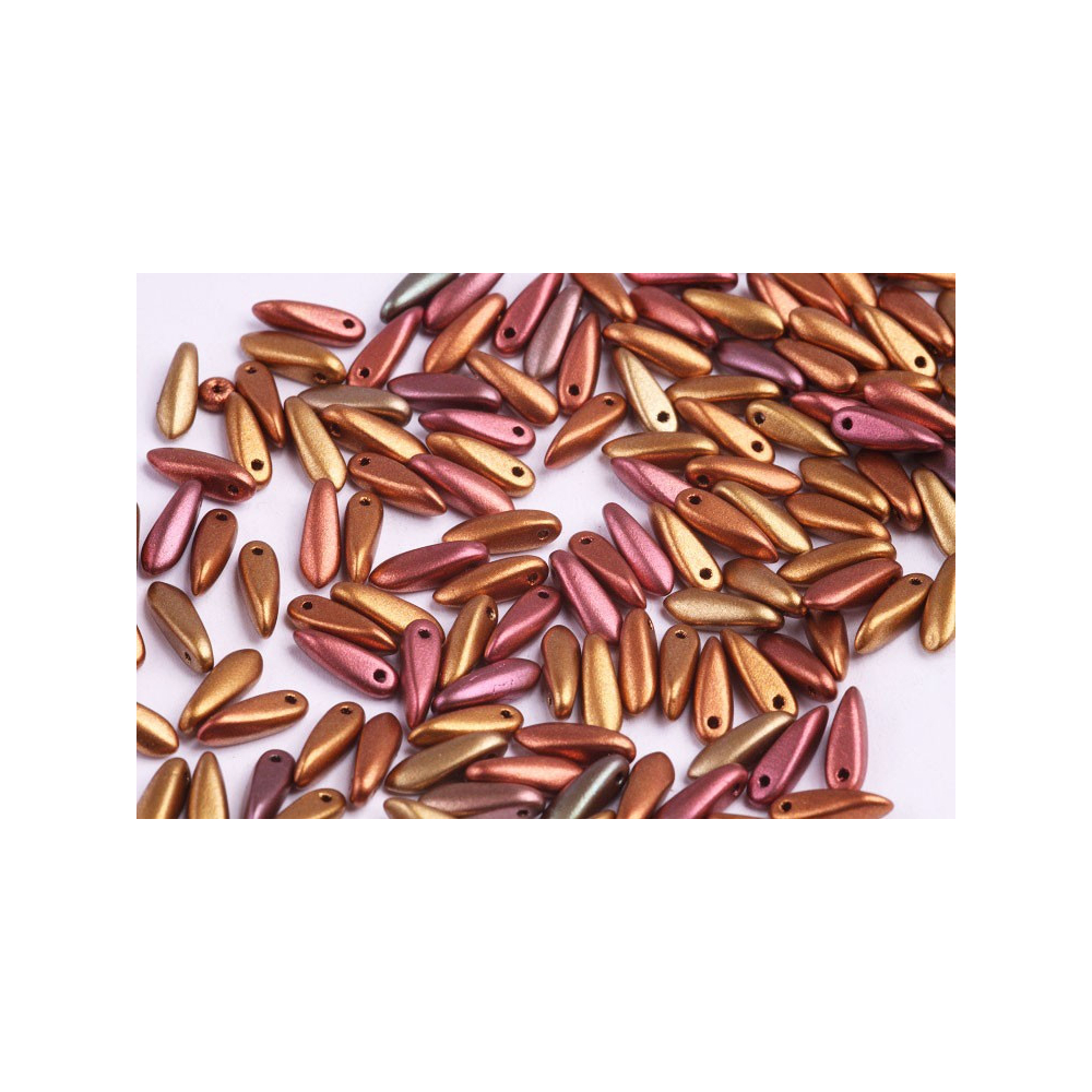 Zažijte jedinečnost a preciznost tradičního českého sklářství se skleněnými korálky ve tvaru jazýčků o rozměrech 3x11 mm. Tyto korálky jsou vyrobeny z kvalitního skla a charakterizuje je jejich dlouhý, úzký tvar, který připomíná jazyk plamene. Díky své jedinečné formě jsou ideální pro vytváření složitých vzorů, ozdobných bordur a elegantních detailů ve vašich šperkových projektech.