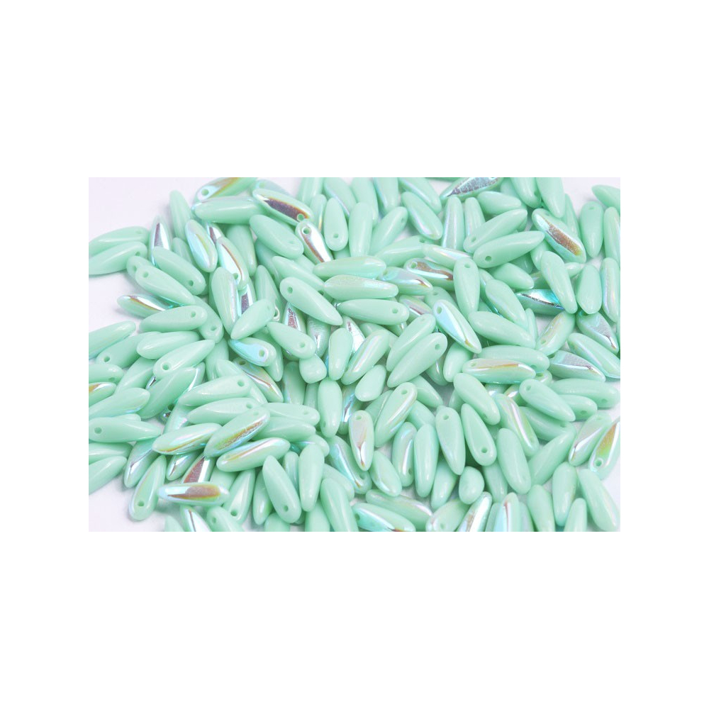 České skleněné korálky jazýčky 3 x 11 mm Velikost průtahu: 0,7 mm Balení: 40 ks Barva: OPAL AQUA...