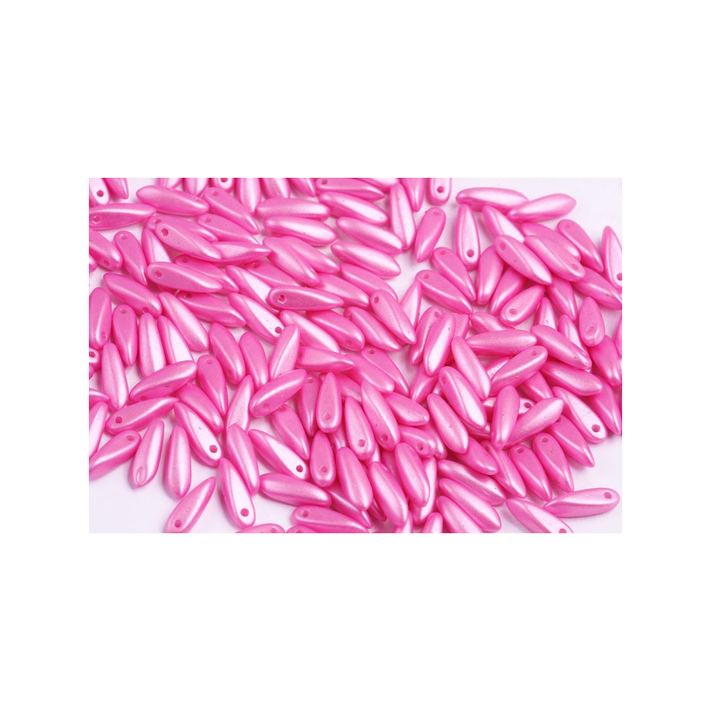 České skleněné korálky jazýčky 3 x 11 mm Velikost průtahu: 0,7 mm Balení: 50 ks Barva: růžová...