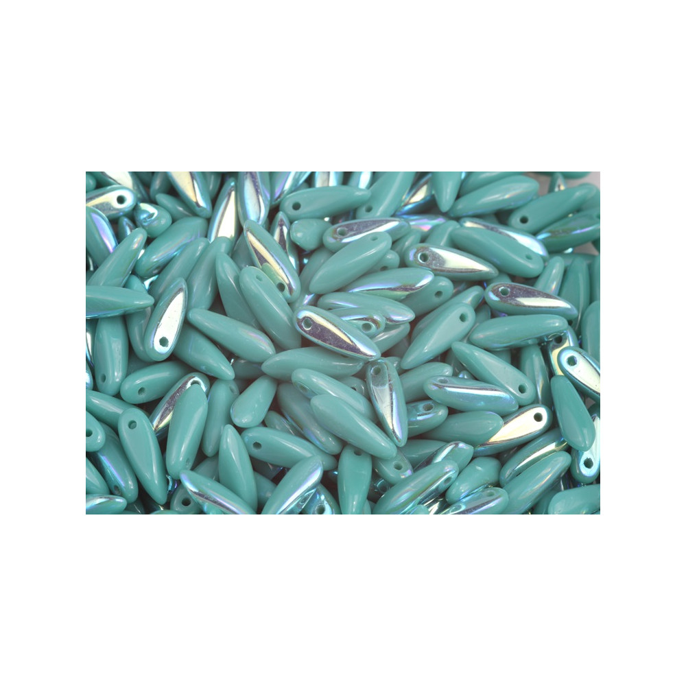 České skleněné korálky jazýčky 3 x 11 mm Velikost průtahu: 0,7 mm Balení: 35 ks Barva: AZZURRO...