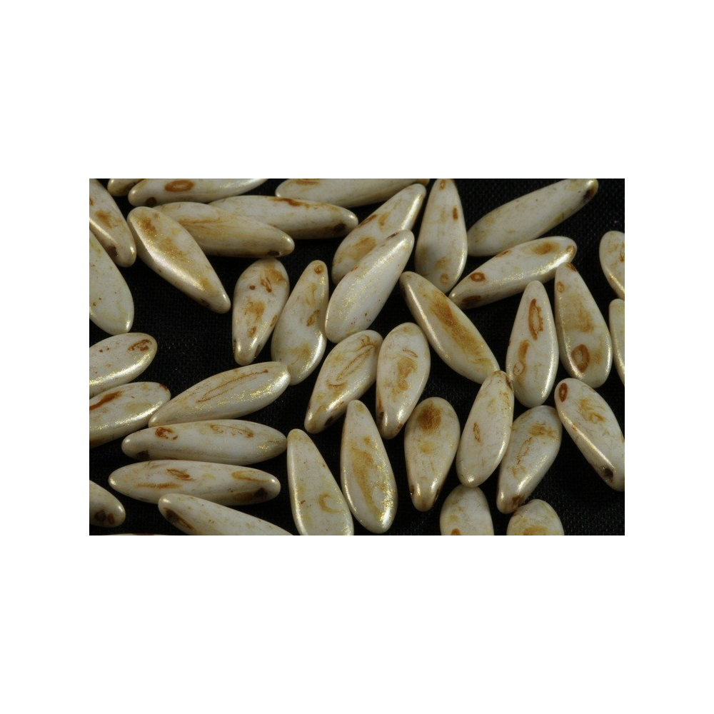 České skleněné korálky jazýčky 5 x 16 mm Průtah: 0,7 mm Balení: 20 ks Barva: OPAQUE BEIGE SPOTTED...