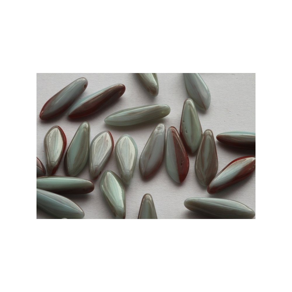 České skleněné korálky jazýčky 5 x 16 mm Průtah: 0,7 mm Balení: 20 ks Barva: OPAQUE BLUE/GREEN...