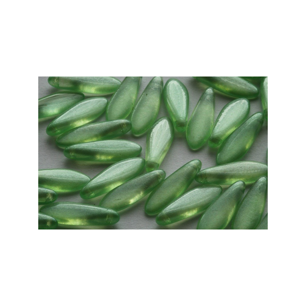 České skleněné korálky jazýčky 5 x 16 mm Průtah: 0,7 mm Balení: 20 ks Barva: OPAL GREEN AQUA AB...