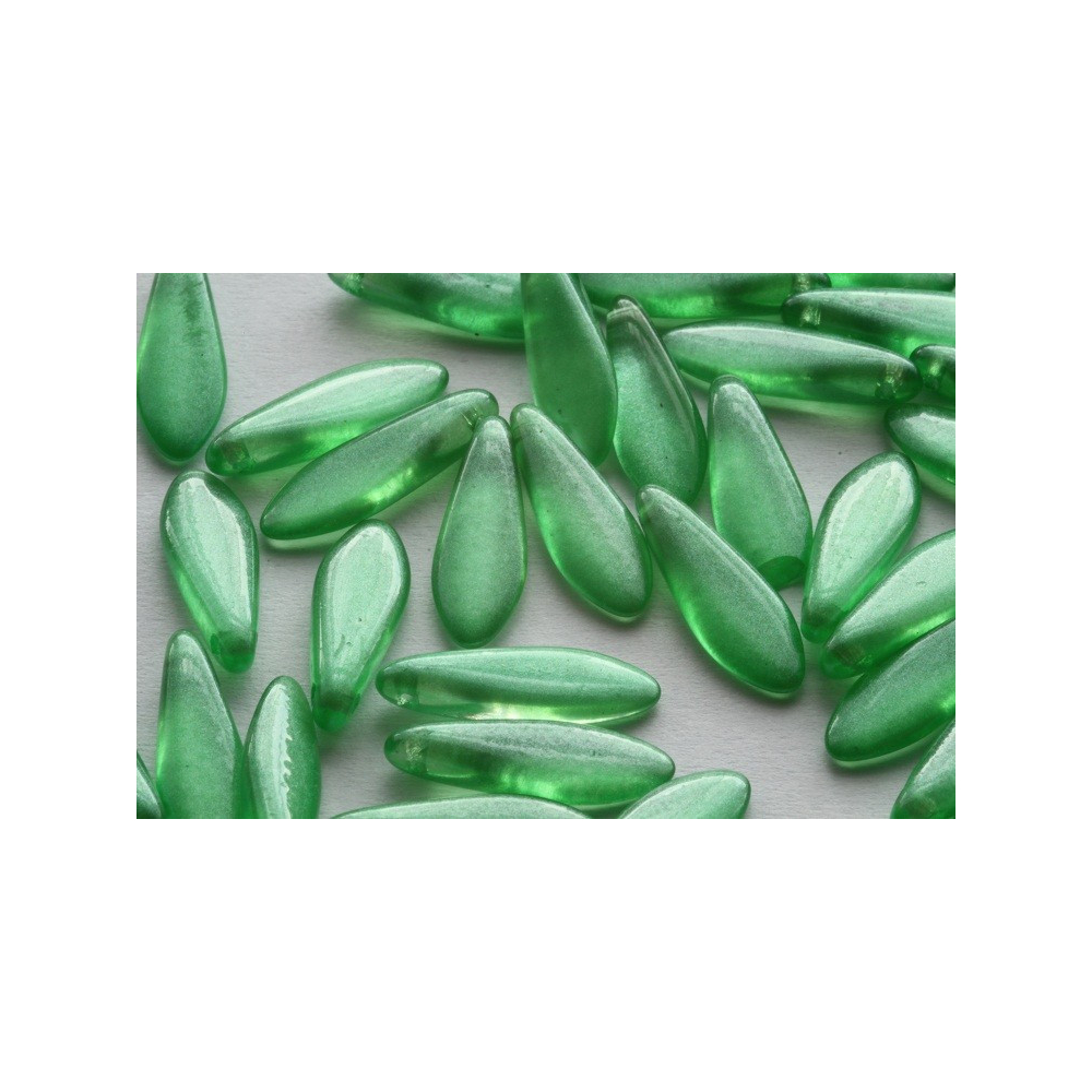 České skleněné korálky jazýčky 5 x 16 mm Průtah: 0,7 mm Balení: 20 ks Barva: zelená Materiál:...