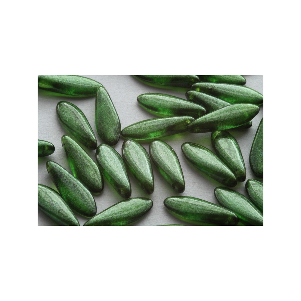 České skleněné korálky jazýčky 5 x 16 mm Průtah: 0,7 mm Balení: 20 ks Barva: zelená Materiál:...