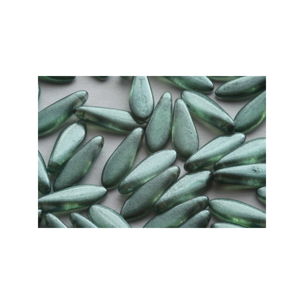 České skleněné korálky jazýčky 5 x 16 mm Průtah: 0,7 mm Balení: 14 ks Barva: zelená Materiál:...