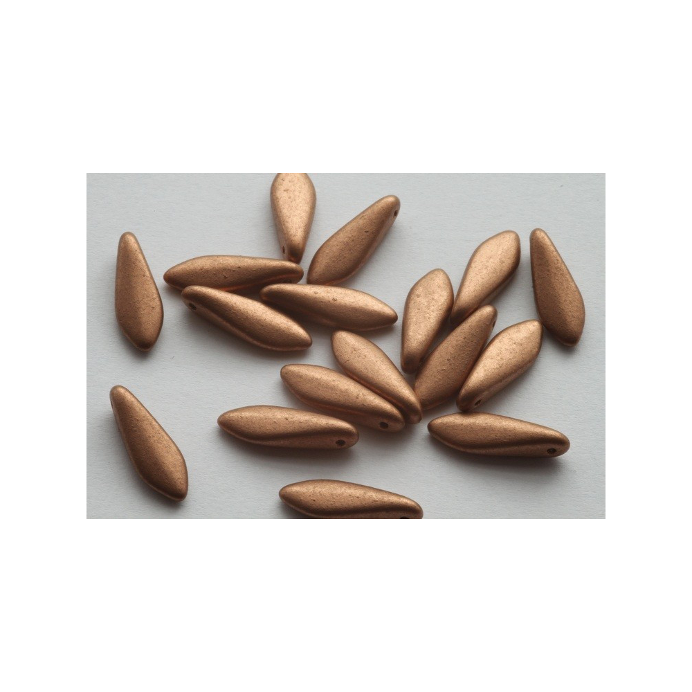 České skleněné korálky jazýčky 5 x 16 mm Průtah: 0,7 mm Balení: 16 ks Barva: měděná Materiál:...