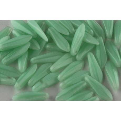 České skleněné korálky jazýčky 5 x 16 mm Průtah: 0,7 mm Balení: 20 ks Barva: OPAL GREEN AQUA Kód...