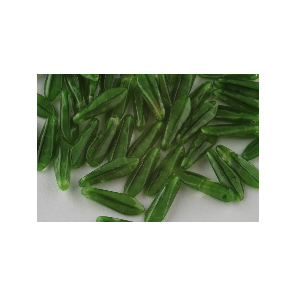České skleněné korálky jazýčky 5 x 16 mm Průtah: 0,7 mm Balení: 14 ks Barva: zelená Materiál:...