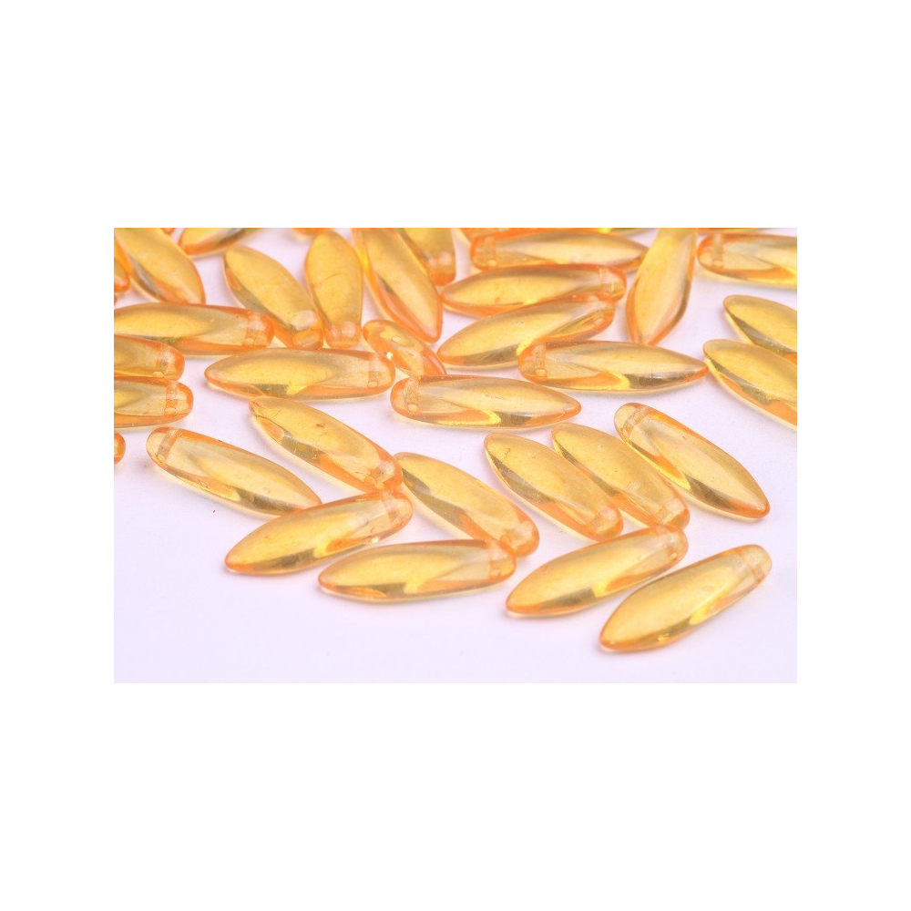 České skleněné korálky jazýčky 5 x 16 mm Průtah: 0,7 mm Balení: 20 ks Barva: žluté Kód barvy:...