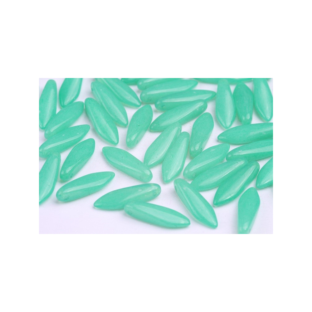 České skleněné korálky jazýčky 5 x 16 mm Průtah: 0,7 mm Balení: 14 ks Barva: zelená Materiál:...