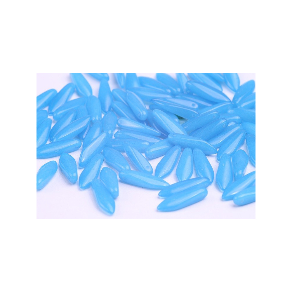 České skleněné korálky jazýčky 5 x 16 mm Průtah: 0,7 mm Balení: 16 ks Barva: světle modrá...