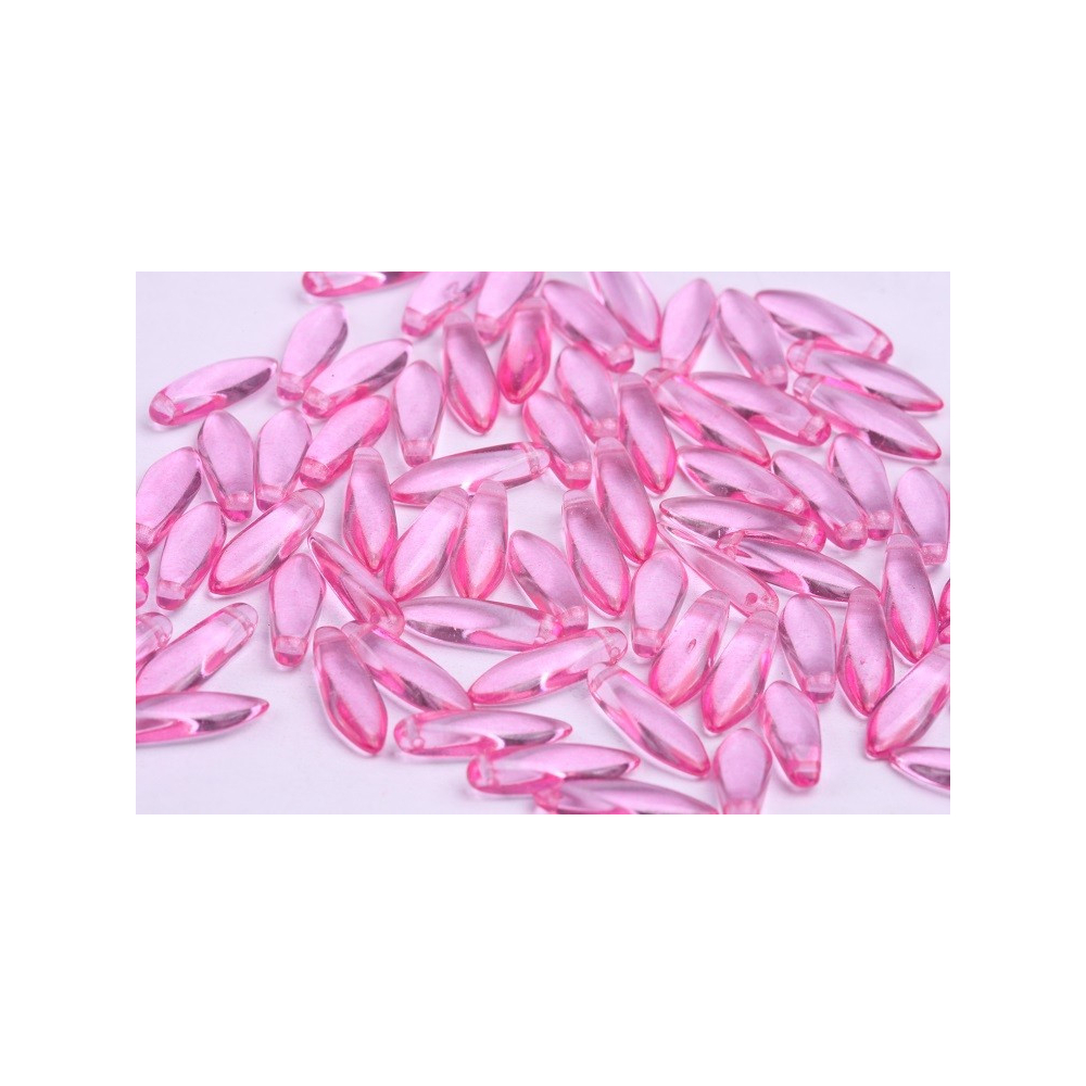 České skleněné korálky jazýčky 5 x 16 mm Průtah: 0,7 mm Balení: 18 ks Barva: růžová Materiál:...