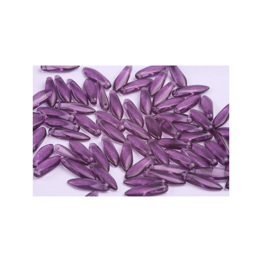 České skleněné korálky jazýčky 5 x 16 mm Průtah: 0,7 mm Balení: 10 ks Barva: fialová Kód barvy:...