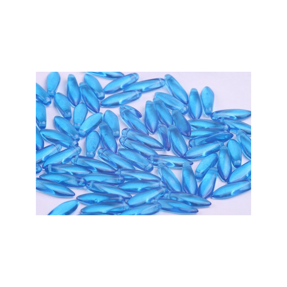 České skleněné korálky jazýčky 5 x 16 mm Průtah: 0,7 mm Balení: 20 ks Barva: světle modré Kód...