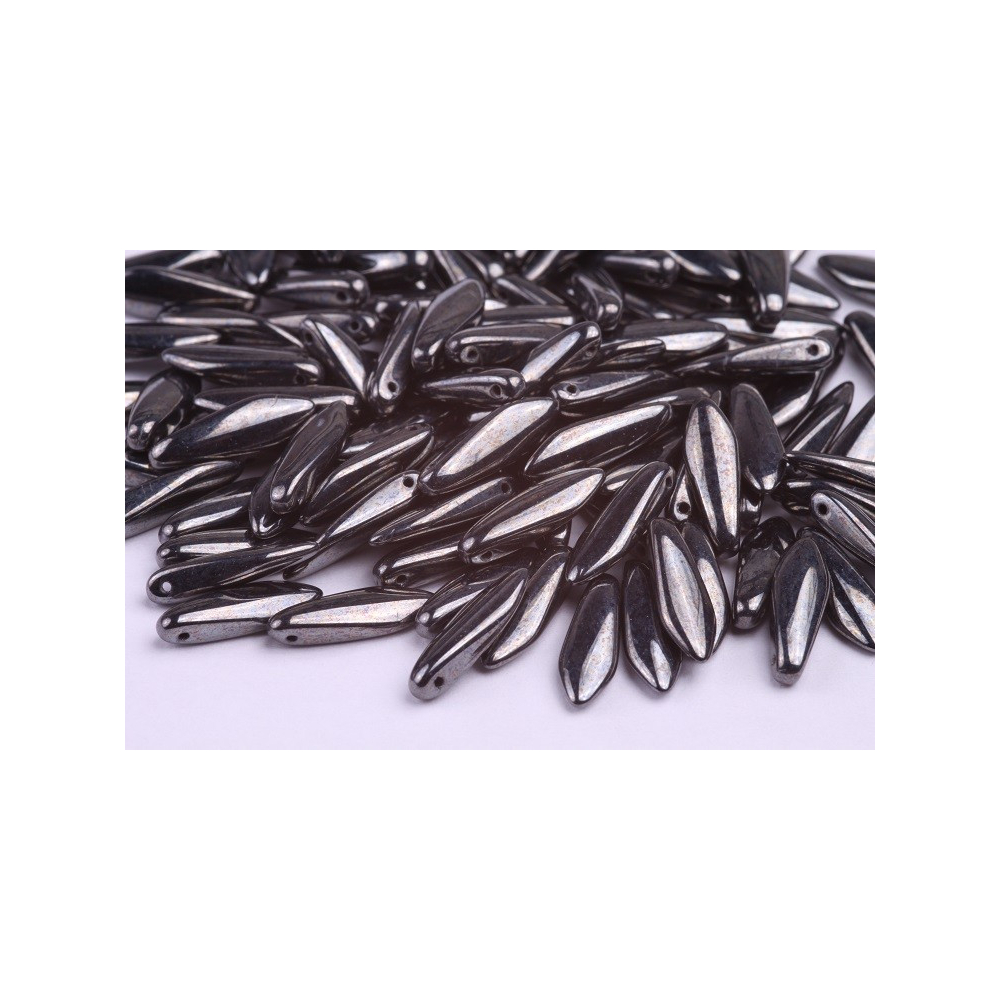 České skleněné korálky jazýčky 5 x 16 mm Průtah: 0,7 mm Balení: 18 ks Barva: šedá Materiál: sklo...