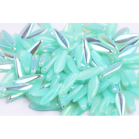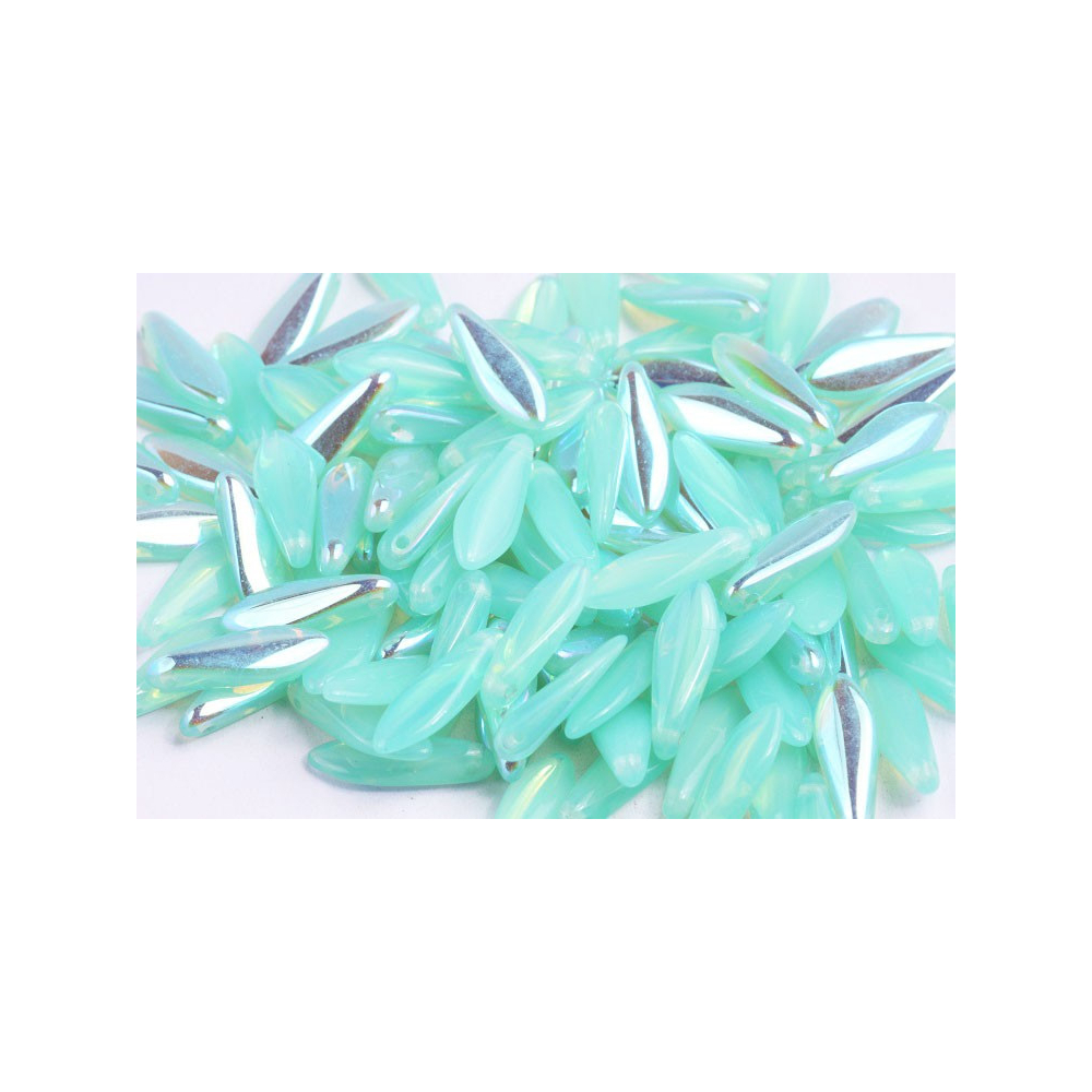 České skleněné korálky jazýčky 5 x 16 mm Průtah: 0,7 mm Balení: 20 ks Barva: OPAL GREEN AQUA Kód...