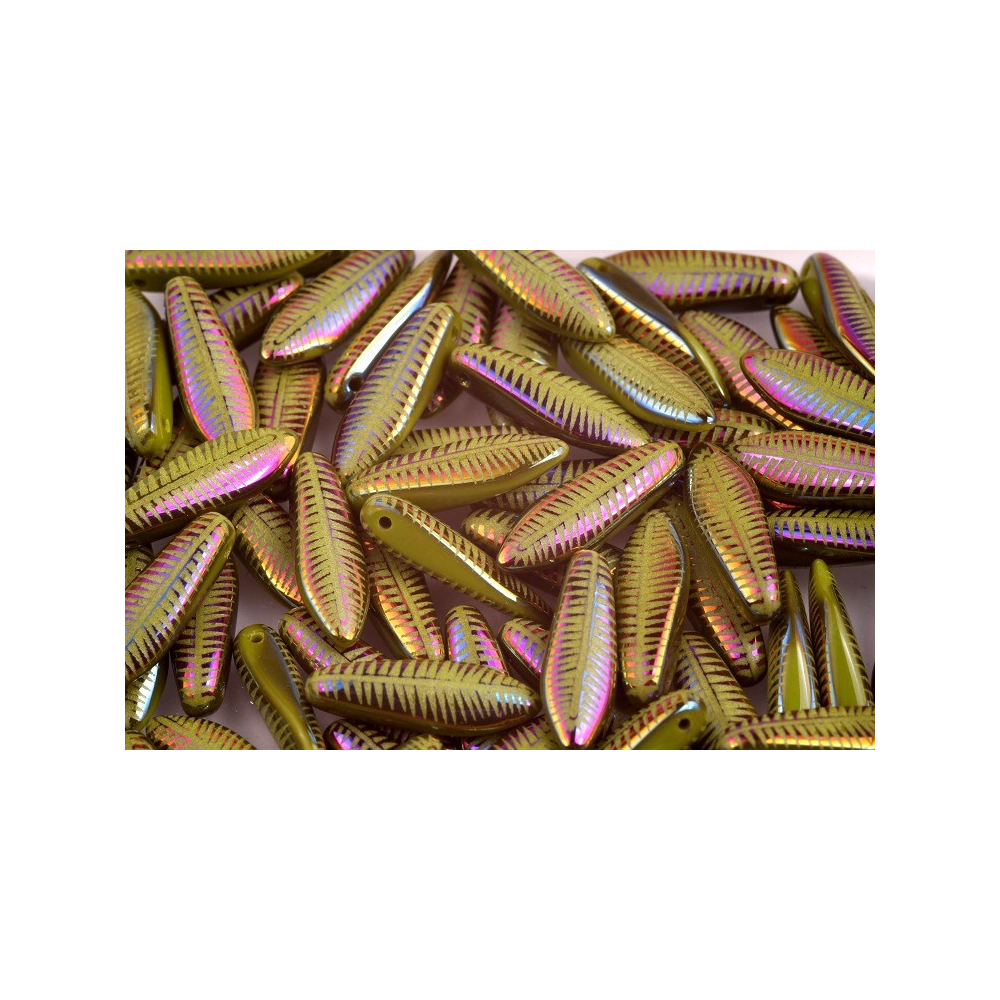 České skleněné korálky jazýčky 5 x 16 mm Průtah: 0,7 mm Balení: 20 ks Barva: Chrysolite AB Kód...